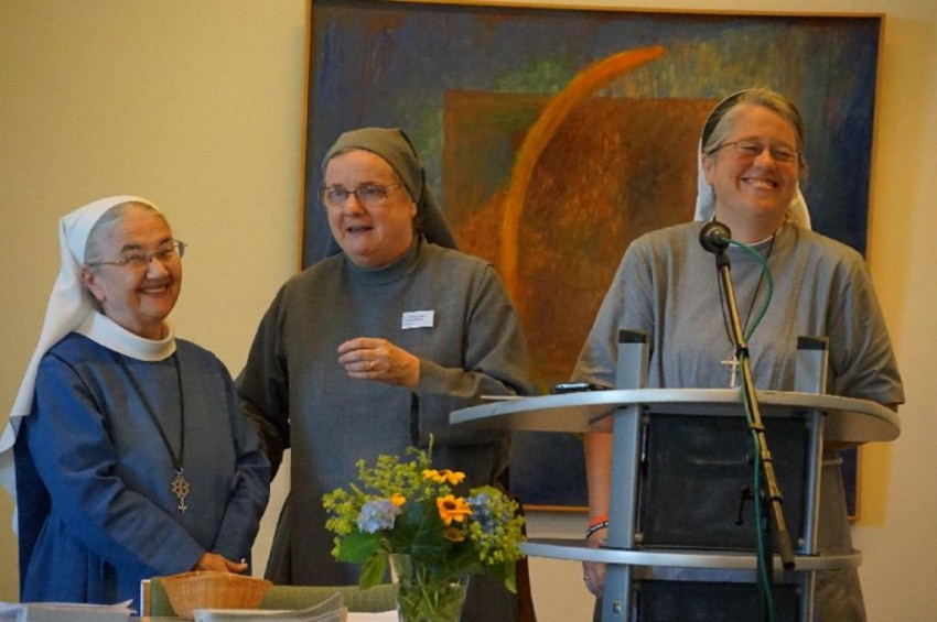 Az első előadást a helyi közösség egyik tagja, Nicole Grochowina tartotta A megszentelt élet elvesztése és újra megtalálása a reformáció egyházaiban címmel. Nicole Grochowina elmagyarázta, hogy Luther Márton korának rossz példája és saját tapasztalata alapján miért fordult olyan élesen szembe a szerzetesség intézményével, s hogy ez a szemlélet több száz évre erősen kihatott az ilyen jellegű kezdeményezésekre – melyek azért nem hiányoztak az evangélikus egyház történelméből sem. Az előadás rámutatott arra, hogy mivel ez az igény időről időre megjelent, tagadhatatlan, hogy mégis van létjogosultsága a fogadalommal is elkötelezett, imára és közösségi életre épülő életformának a protestáns egyházakon belül is. Erre élő példa és bizonyíték a találkozót befogadó evangélikus közösség, de a többi jelen levő, szintén protestáns egyházban élő más szerzetesi jellegű közösségek is. Az előadó utalt Dietrich Bonhoeffer kísérletére is, aki 1935-ben imádságos közösséget hozott létre, azonban a hatalom néhány évvel később, mint politikailag veszélyes intézményt, bezáratta.