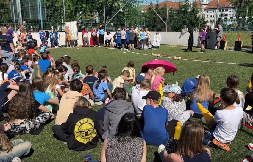 Reggel 8-tól színes programokkal várták az iskola tanulóit, dolgozóit és az öregdiákokat. Délelőtt a hagyományos „lovagi tornán” – akadálypályán, bajvívásban és szellemi vetélkedőben – mérték össze tudásokat, ügyességüket az ötödikesek. A győztest a György királynak öltözött, a vetélkedőt „udvarnépével” szemlélő Käfer György igazgató a Szent János lovagrend legújabb tagjává avatta.