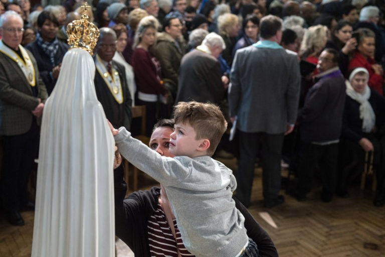 A Fatimai Világapostolság vándorszobrát Vincent Nichols bíboros, westminsteri érsek fogadta, megáldotta és megkoronázta a londoni Wesminster-székesegyházban február 18-án, majd újra Mária szeplőtelen szívének oltalmába ajánlotta Angliát és Walest, megújítva Bernard Griffin bíboros 1948-as felajánlását. A fatimai szoborral együtt a boldoggá avatott látnokok, Ferenc és Jácinta ereklyéi előtt is kifejezhették tiszteletüket a hívek, majd a délután folyamán Fatima-szimpóziumot tartottak a westminsteri katedrális nagytermében. A vándorszobor vasárnap, február 19-én „továbbindult”: húsz angliai és walesi székesegyházba jut el októberig tartó „vándorútján”.