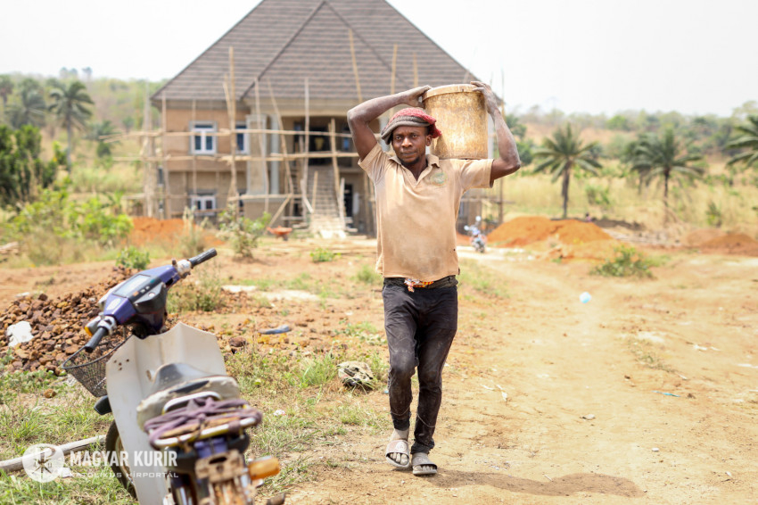 A látogatás után tovább indultunk Ifite-Ogwariba, ahol ismét egy olyan kezdeményezést láttunk, ami csak Afrikában létezhet ilyen formában. Egy tágas, üres területen elkezdtek építeni egy templomot plébániával és egy iskolát, majd amikor a kevés pénzük elfogyott, abbahagyták az építkezést; ha újabb komolyabb támogatás érkezik majd, újrakezdik. Hiszik, hogy felépül a nagyszabású épületkomplexum, pedig külön nehézség, hogy több száz méter mélyről lehet csak vizet nyerni majd… vagy onnan sem.