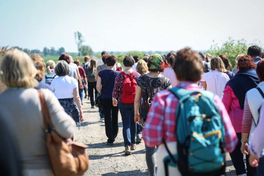 Tolna megyében járunk. Úti célunk Báta, a kegyhely, de a résztvevők a szomszédos településen, Furkótelepen gyülekeznek. Innét indul az egyórásra tervezett, imádságos zarándoklat, amelyet mise, majd a közösségi találkozás alkalma követ. Ötvenen lehetünk, de ez nem a teljes létszám. Bátán várnak, akik nem tudnak vagy mernek velünk tartani, de a templomból velünk imádkoznak.