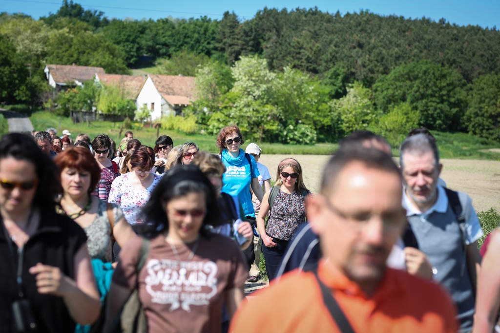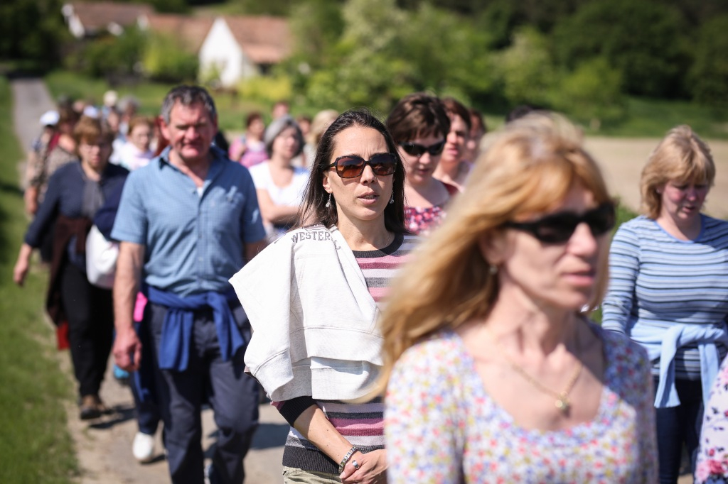 Amikor tíz előtt elindulunk, tűz a nap. Földúton haladunk, és közben rózsafüzért mondunk; az egyes Üdvözlégyek előtt mindig gyermekek nevei hangzanak el. A résztvevők gyermekeinek nevei, mert ez a zarándoklat értük van. Repce- és búzaföldek között haladunk.