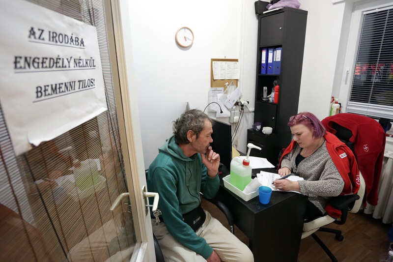 Németh Attila: Vannak fatüzeléssel működő kis kunyhók, van, ahol vadkempingeznek, és vannak az aluljárók, ahol szanaszét fekszenek az emberek, takaró nélkül. Találunk olyan megoldást is, ahol egy vastagabb faágon áthúzott fóliadarab alatt alszanak. Fontos tudnunk, kik a legveszélyeztetettebbek. Nem feltétlen azok, akiknek lakcímkártyáján az áll, hogy lakcím nélküli. Mert az eldugott kunyhóban éldegélők sokszor önálló háztartást tartanak fenn, rendet tartanak maguk körül, fát szereznek, fűtenek. És vannak a teljesen leromlott állapotúak, akik csak vegetálnak aluljárókban, utcán, parkokban. Éppen annyi pénzt koldulnak maguknak, ami elég a napi szükségleteikre. Hatalmas különbségek lehetnek rászoruló és rászoruló között is. A körzetben jelenleg 78 embert gondozunk. Nem lehet egyformán mindegyikükre figyelni, muszáj sorrendet felállítani.