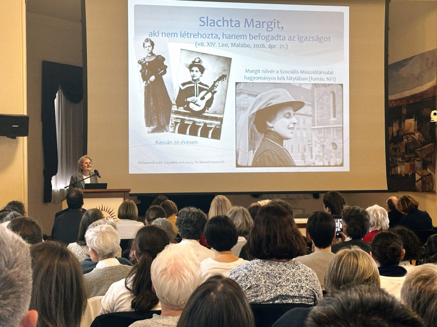 Németh Emma szociális testvér, közgazdász előadásában az igazság és szeretet, az igazság és irgalom prófétájaként mutatta be a Szociális Testvérek Társaságát alapító Slachta Margitot. Margit testvér vallotta, az igazságosság csak az örökérvényű igazságon alapulhat. „Az igazság alkutlan és kérlelhetetlen, az irgalom határtalan. Ha érvényesül, megáldja a földet”. Alakjában párhuzamosan él a másik emberért és a nemzetért való felelősség.