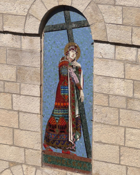 Szent Ilonát természetesen a Szent Sír bazilikában is megtaláljuk: többek között ez a 19. század végi szobor ábrázolja a császárnét, melyet I. Miksa, a Habsburg-családból származó mexikói császár adományozott a Szent Kereszt megtalálása kápolna díszítésére.
