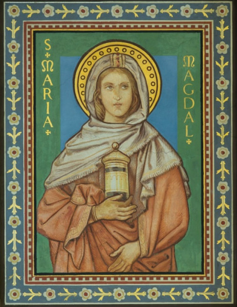 A pécsi székesegyház mennyezetén, a szentély déli oldalán, a szentek sorában kapott helyet az olajosedényt tartó Bűnbánó Szent Mária Magdolna freskója. Miután Jézus hét ördögöt űzött ki belőle és meggyógyította, Mária Magdolna a tanítványokkal együtt élete végéig követte. Az evangéliumok elmondása alapján tanúja volt a Megváltó keresztre feszítésének, halálának és feltámadásának.