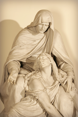 A Pécsi Egyházmegyében Abaligeten szenteltek Mária Magdolna tiszteletére templomot (1796). A pécsi püspökségen több olyan képzőművészeti alkotás is látható, amelyen Mária Magdolna szerepel. A püspöki palotában kapott helyet Zala György 1884-ben készített márvány szoborcsoportja: Mária Magdolnát Szűz Mária lábait átkarolva láthatjuk. A szobrász a két nőalak gesztusaiban, mozdulataiban és érzelmeiben nagyon finoman és érzékletesen mutatja meg a két nő gyászát és vigasztalódását. A Püspöki KincsTár kiállításán egy 18. század közepén készült festményen Mária Magdolna beteget látogatva, vagyis az irgalmasság cselekedeteinek gyakorlása közben jelenik meg. A betegben pedig maga Krisztus ismerhető fel Máté evangéliuma alapján: „Bizony mondom nektek: amikor megtettétek ezt egynek e legkisebb testvéreim közül, nekem tettétek.”