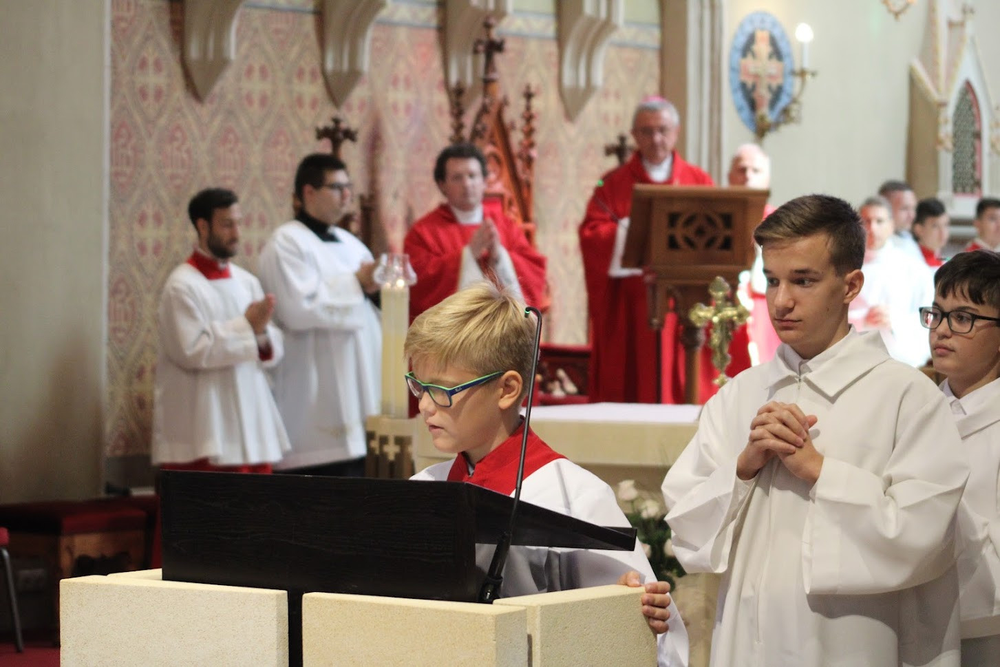 A felső tagozat tanévnyitó szentmiséjét az intézmény új iskolalelkésze és püspöki biztosa mutatta be augusztus 31-én 15 órától. Simon Dávid atya közvetlen hangvételű szentbeszédében a talentumokról szóló evangéliumi részhez kapcsolódva hívta fel a diákság figyelmét a mindannyiunkban Isten kegyelméből fellelhető végtelen gazdagságra és az ebből fakadó felelősségre és kötelességre.