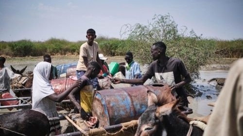 A szudáni menekültek várják a sorukat, hogy ivóvizet szerezzenek egy eliszaposodott tóból, miközben növekszik a vízhiány és a szennyezett víz miatti megbetegségek száma