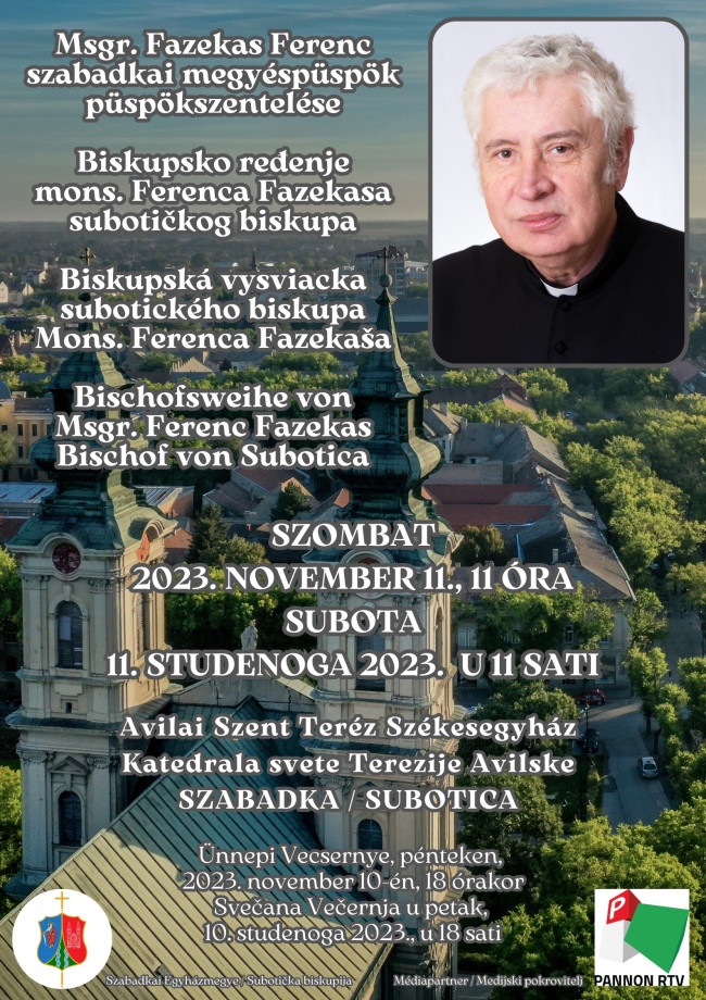 Fazekas Ferenc az elhunyt Večerin Slavko püspököt követi a Szabadkai Egyházmegye élén.