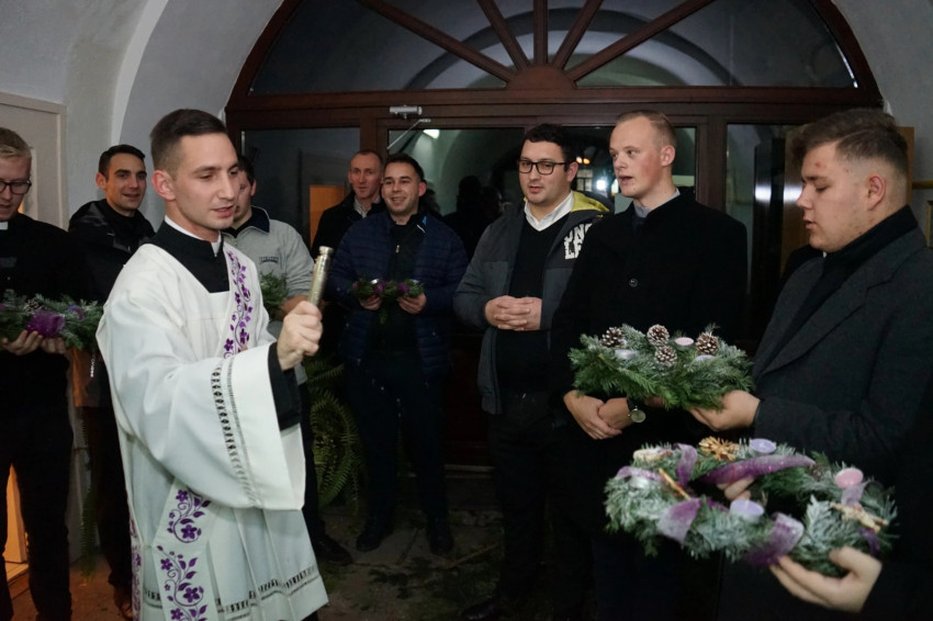 Délután a kispapok és a diákok közösen készítették, díszítették az adventi koszorúkat, amelyek az áldás után a szemináriumi élettérben segítik az úrjövet méltó megélését. A fiatalok meg is ajándékozták a közösséget, hiszen ők készítették az udvaron elhelyezett nagy, szabadtéri adventi koszorút.
