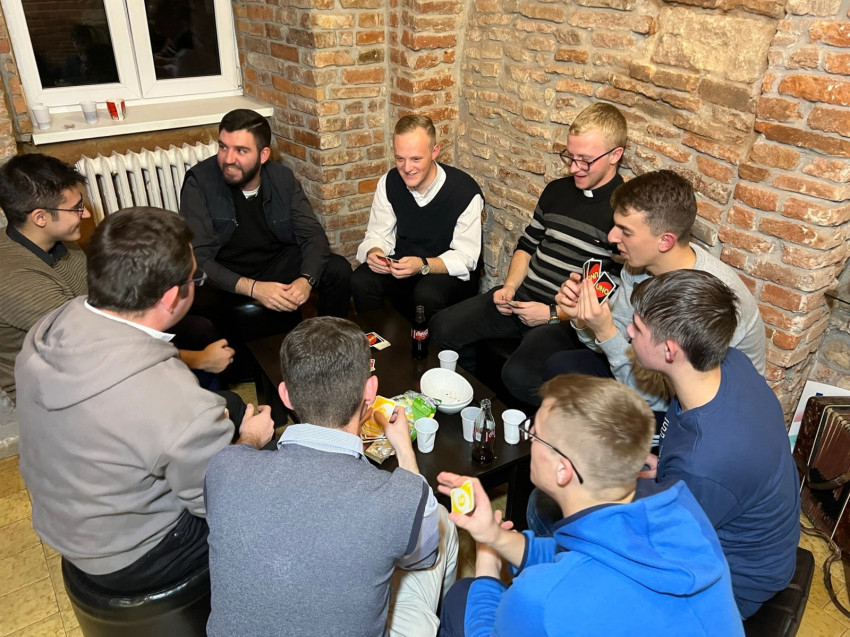 A közös vacsorát követő kötetlen programon társasjátékok, beszélgetések közepette ismerkedtek a vendégek a kispapok életével.