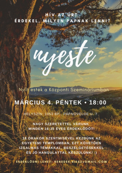 A program 18 órakor szentmisével kezdődik az Egyetemi templomban, ezután a szomszédos szemináriumban (V., Papnövelde u. 7.) izgalmas témákkal, beszélgetésekkel és jó hangulattal készülnek a szervezők.