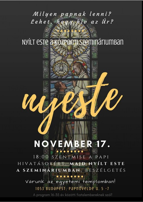 A „Nyeste” néven meghirdetett program a papi hivatás iránt érdeklődő fiatalembereket célozza meg, akik kispapokkal és elöljáróikkal találkozhatnak egy kötetlen kiscsoportos beszélgetés keretében. Az este során betekintést nyerhetnek a papságra készülők életébe, egy kis ízelítőt kaphatnak a közösségi élet örömeiből, s megismerhetik a papnevelés alapintézménye, a szeminárium működésének alapjait.