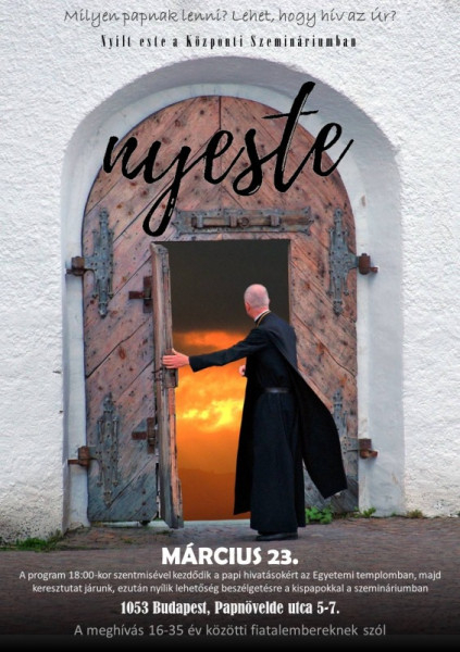A Nyeste címmel meghirdetett program a papi hivatás iránt érdeklődő fiatalembereket célozza meg, akik az estek során kispapokkal és elöljáróikkal találkozhatnak egy kötetlen kiscsoportos beszélgetés keretében. Betekintést nyerhetnek a papságra készülők életébe, egy kis ízelítőt kaphatnak a szemináriumi közösségi élet örömeiből, s megismerhetik a papnevelés alapintézménye működésének alapjait.
