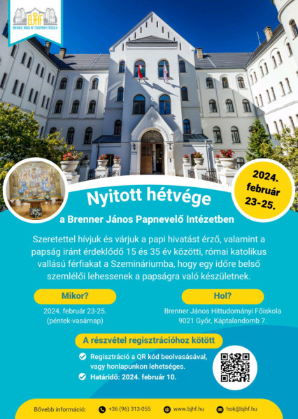 Az intézmény a 2023/2024-es tanév II. félévében megrendezi a teológus szakra vonatkozó nyitott hétvégét.
