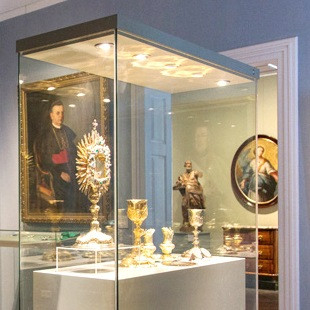 Az évszázadokig csak kevesek számára látható, páratlan műalkotásokat rendszerező képzőművészeti kiállítás a Pécsi Egyházmegye püspöki gyűjteményének értékes műtárgyait, festményeit, grafikáit, metszeteit, szobrait, ötvöstárgyait, numizmatikai emlékeit mutatja be. Itt látható például a mecénás püspök, Klimó György portréja és jelentős római éremgyűjteménye, Karl Atzger osztrák származású festő Krisztus életét bemutató, nagyméretű festménysorozata, amely egykor a székesegyházban kapott helyet, és itt található Székely Bertalan és Kubányi Lajos egy-egy alkotása is.