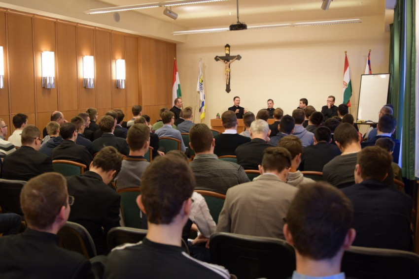 Ezt követően kerekasztal-beszélgetés kezdődött a szeminárium dísztermében Juhos Imre spirituális vezetésével és négy meghívott atya közreműködésével. A plébánosok (Déri Péter, Mikolás Attila, Németh István, Finta József) hivatásukról, a szemináriumról és természetesen papi szolgálatukról beszéltek, majd tanácsokat adtak azoknak, akik lelkipásztori elhivatást éreznek magukban.