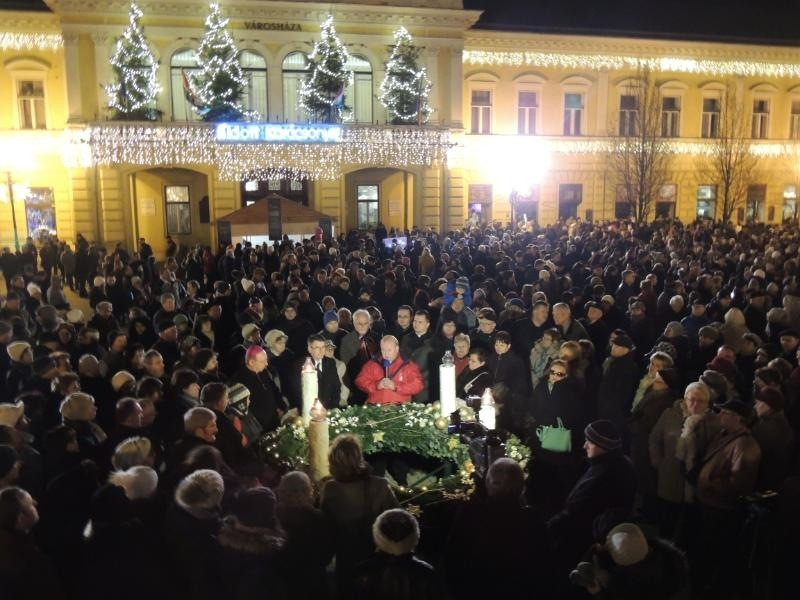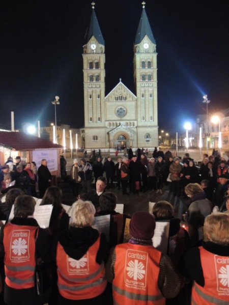 Az ünnepi eseményen jelen volt Écsy Gábor, a Katolikus Karitász országos igazgatója is, aki a gyertyagyújtáskor ismertette az „Egymillió csillag a szegényekért” országos figyelemfelhívó program célját, valamint megköszönte a városnak, hogy befogadta, és gondos gazdája lett az eseménynek. Az egy hétig tartó eseménysorozat utolsó állomására érkező vendégeknek és önkénteseknek, érdeklődőknek is köszönetet mondott, hogy bekapcsolódtak az akcióba. Az adventi gyertya meggyújtását követően a karitász tagjai megáldott, égő gyertyákat ajándékoztak a Kossuth téren a támogatóknak és az érdeklődőknek, majd mécsesekből megformálták a Katolikus Karitász jelét, a lángoló keresztet, amely a szeretet tüzére utal. A mécsesgyújtáshoz kapcsolódva karitászönkéntesekből álló kórus énekelt karácsonyi dalokat.
