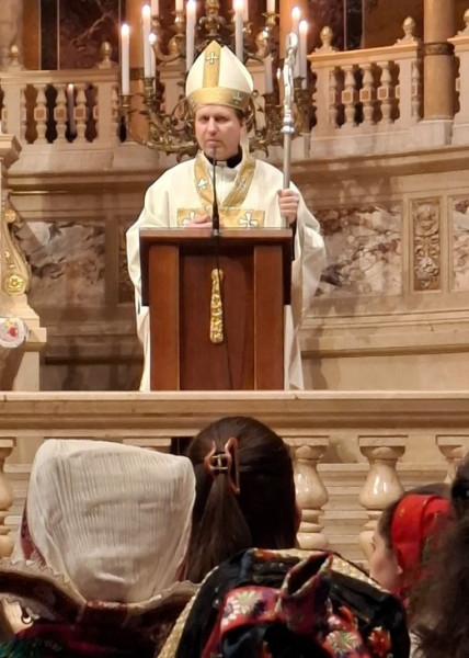 A moldvai Pusztinából származó fiatal Veres Mihaela a moldvai Mária tiszteletére kezdetű éneket énekelte lélekig hatoló, gyönyörű hangján. Végül a Keszthelyi Család Iskola nyolcadikosai által elkezdett Mennyek királyné asszonya kezdetű közismert népénekbe már a hívek is bekapcsolódtak.