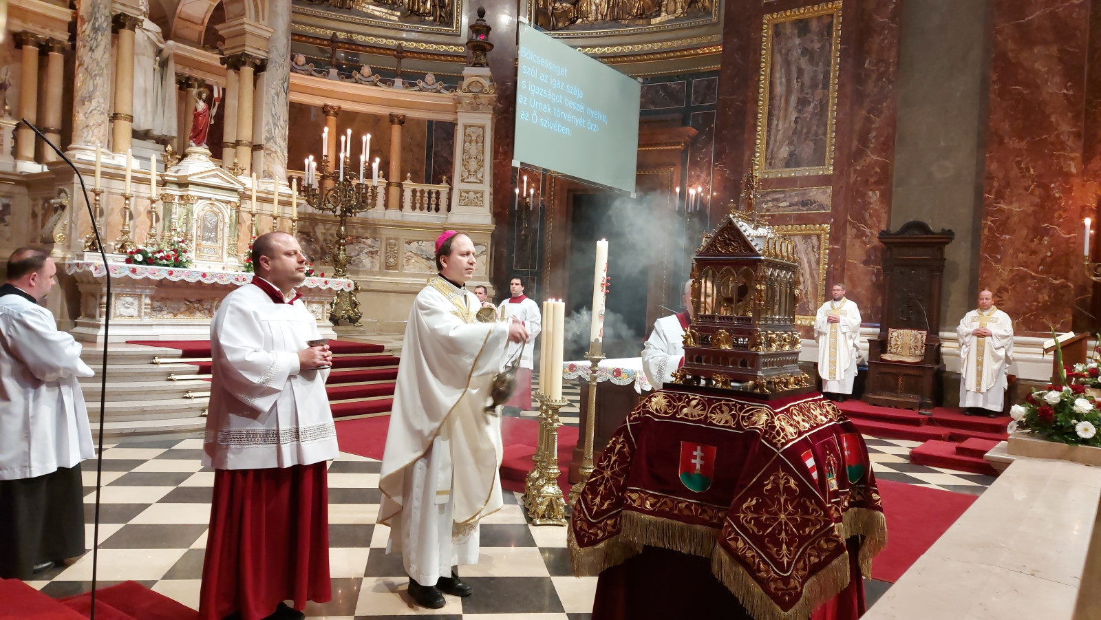István király tudott a maga korában reménnyel előretekinteni. „Legyen remény a mi szívünkben is, lássunk előre, az életet szolgáljuk, ne az önzést, ne a zárt szíveket. Nyissa meg az emberek szívét és lelkét az isteni kegyelem az életre, az örömre minden nehézség és küzdelem közepette is. Adja Isten, hogy ebben tudjunk magyarságként növekedni, tudjunk megújulni, mert mindig van lehetőség megújulásra (...) Isten mindig tud új lendületet, kegyelmet adni a szívünkbe, ezt kérjük a mai napon egész népünk számára Szent István közbenjárásával” – zárta homíliáját Mohos Gábor.