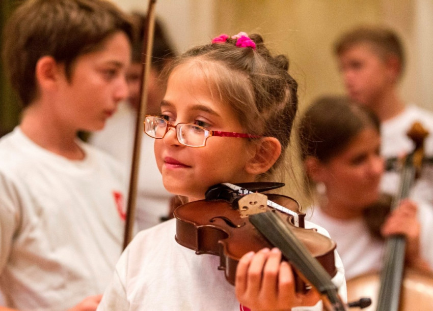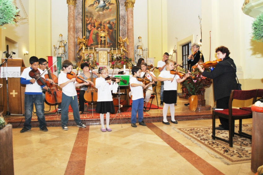 Az estet a monori cigánytelepen a Magyar Máltai Szeretetszolgálat által működtetett Szimfónia Programban hegedülni tanuló gyerekek koncertje nyitotta meg. Az immár egy éve működő programban – amelyet korábbi híradásunkban bemutattunk – a zene legfőképpen arra szolgál, hogy a gyerekeket együttműködésre és közös munkára tanítsa. A részt vevő gyerekek igyekezetükkel és lelkesedésükkel megindítják a közönséget. Legtöbben egyelőre inkább a ritmust adják hangszereiken, de a legtehetségesebbek, legszorgalmasabbak már komolyabb dalokat is el tudnak játszani. A programot a gyerekek zenetanárai mutatták be a templomot megtöltő közönségnek.