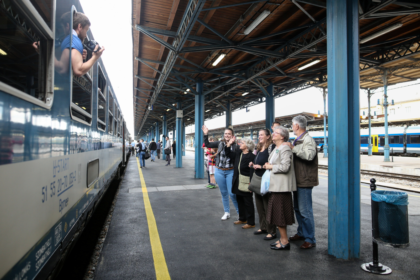 Az állomáson azonnal magával ragadja a vonatra várakozókat a találkozás-indulás hangulata. Egyik pillanatról a másikra megszűnnek az utazásra készülődés ügyes-bajos gondjai, ismerősök örömmel üdvözlik egymást. Sokan vagyunk, több mint ezren utazunk a 426 méter hosszú, 17 kocsiból álló vonaton, amit az a mozdony húz, melyet Erdő Péter bíboros e héten áldott meg és amelyen a Nemzetközi Eucharisztikus Kongresszus szimbólumai láthatók.