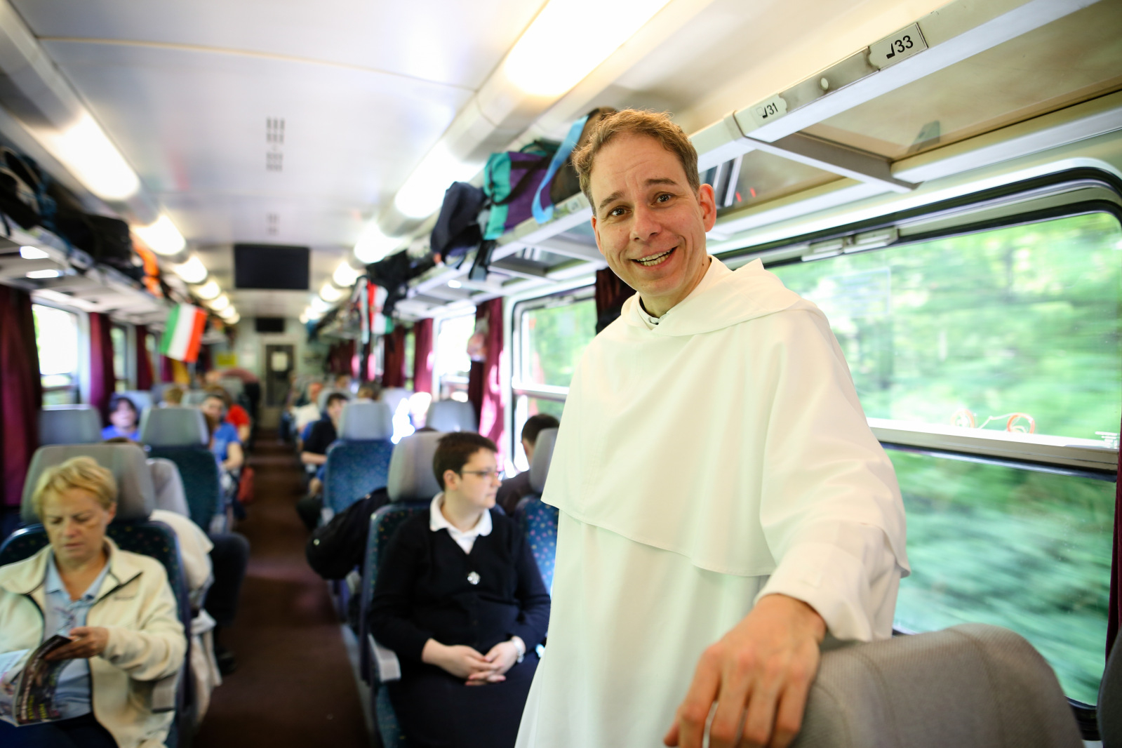 De nagyon előreszaladtunk, a fővárost elhagyva Miskolc felé tartunk. A vonatúton egymást követi az imádság, az elmélkedés és a beszélgetés. Csendes fülkék várják elmélkedésre és szentgyónásra a zarándokokat. Az esztergomi papnövendékek pápák írásaiból olvasnak fel. Közben sokszor felcsendül az ének Pálmai Árpád zarándokok számára összeállított énekesfüzetéből.