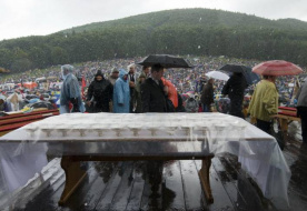 Vannak, akik elfoglalják helyüket, mások lepakolás után a szerelvény közepénél gyülekeznek a peronon. Ide várjuk Udvardy György pécsi megyéspüspököt is, aki hamarosan megáldja utunkat. Népes csapat várakozik. Kitűnnek a Pécsi Egyházmegyéből érkezett, egységesen szalmakalapot viselő zarándokok és a mindig derűs esztergomi papnövendékek. Itt vannak már a zarándokút lelkivezetői, Michels Antal, Pál Csaba, valamint Burbela Gergely SVD atyák, és sorra érkeznek a részt vevő pap- és szerzetestestvérek, nővérek.