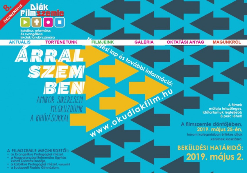 Az Ökumenikus Diákfilmszemlét a Katolikus Pedagógiai Intézet, az Evangélikus Pedagógiai Intézet, a Magyarországi Református Egyház Zsinati Oktatási Irodája, valamint a Budapesti Piarista Gimnázium hirdeti meg. A szervezőbizottság így fogalmazta meg az idei filmszemle kiemelt témáját: „Árral szemben – Amikor sikeresen megküzdünk a kihívásokkal”.