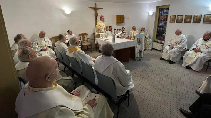 A nap szentmisével kezdődött, amit közös reggeli követett. A papi otthonban jelenleg tizennyolc nyugdíjas pap él. A délelőtt folyamán velük találkozott a főpásztor, életkörülményeikről tájékozódott, meghallgatta őket. A jó hangulatú és közvetlen találkozás során az érsek az egyházmegye helyzetéről, saját munkájáról, terveiről is beszélt, arra kérve az otthon lakóit, hogy sokéves lelkipásztori tapasztalataik alapján osszák meg meglátásaikat, ötleteiket.