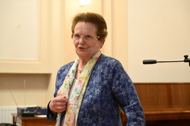 Magyarné Hegyi Mária tanúságtétele következett. Mária élete állomásainak bemutatása közben nagyívű pályát rajzolt fel nagyon szerényen, a különböző generációk (ük-, déd-, nagyszülők, szülők és unokák) egymásba kapcsolódását a hit talaján. Voltak magasságok, mélységek, nagy próbatételek, de az Istenbe vetett hit átsegítette őt és családtagjait a nehézségeken. Különösen megrendítő és példaértékű volt a stramm és egészséges férj, Sándor hirtelen bekövetkezett „covidhalálának” elviselése, feldolgozása, amihez neki is fentről adták az erőt. Hamarosan követte ezt vejének, Péternek a földi létből való távozása, a „gyilkos kór” úgy ragadta el a fiatalembert, hogy három kisgyermeket hagyott maga után. A tanúságtétel ITT hallgatható vissza.