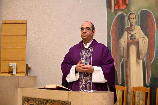 A találkozó szentmisével folytatódott a Brenner János Kollégium kápolnájában, amit a megyéspüspök mutatott be Marx Gyula diakónus szolgálatával. Ezalatt volt gyónásra is lehetőség.