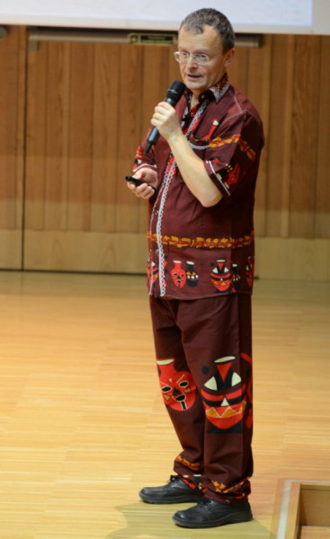 Gyerekként öt évig élt Algériában családjával, de mindig azt mondták neki, hogy Afrika a Szaharától délre kezdődik. Ezt immár második kongói útja után ő is állítja – kezdte beszámolóját. Mint mondta, a mintegy kétmillió-háromszázezer négyzetkilométer területű ország – amely huszonötször nagyobb, mint Magyarország – 1885-ben belga gyarmat lett. Az akkori belga király, II. Lipót a nagyhatalmak egyetértésével vonta uralma alá Kongó vízgyűjtő medencéjét. Hirtelen egymással addig semmilyen kapcsolatot nem tartó népcsoportok kerültek egy államalakulatba, amelynek az lett az egyik következménye, hogy máig nem tudni, pontosan hány nyelvet is használnak az országban. A hivatalos a francia, de azt sem beszéli mindenki. Mellette pedig további két-háromszáz különböző nyelv él – magyarázta.