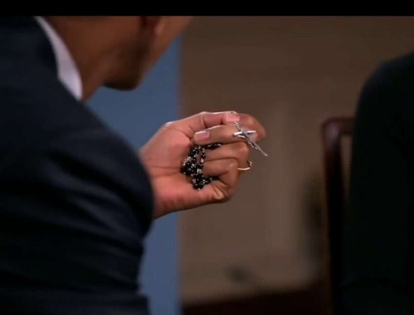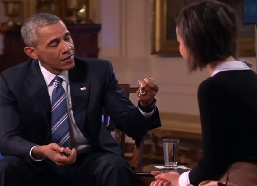 Az interjú közben Barack Obama elővette öltönynadrágja zsebéből a rózsafüzért, és megmutatta az őt kérdező Ingrid Nilsennek, akinek elmondta: „Sokat jelent ez számomra, mert annyira csodálom őt [ti. Ferenc pápát], és ez [a rózsafüzér] a békére, a megértés és az etikus hozzáállás előmozdítására emlékeztet.”