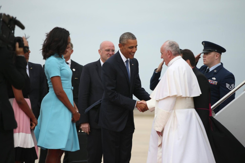 Az érkezést megelőzően Josh Earnest, a Fehér Ház szóvivője kiemelte a reptéri elnöki személyes fogadás rendkívüliségét, rámutatva, hogy Barack Obama az amerikaiak pápa iránti legmagasabb fokú tiszteletének jeléül döntött a gesztus mellett. Igaz, volt már erre példa: George W. Bush, az Egyesült Államok akkori vezetője 2008-ban szintén a Maryland állambeli Andrews támaszponton fogadta az akkori katolikus egyházfőt, XVI. Benedeket.