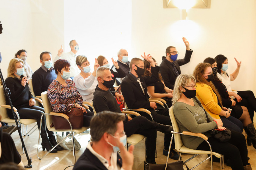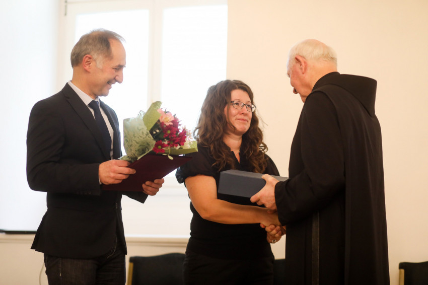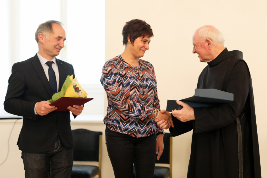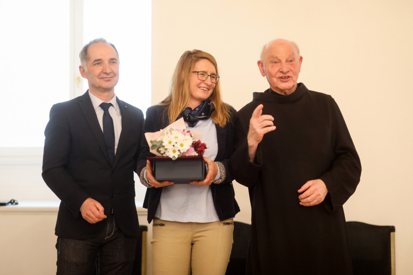 A beszélgetés után Kozma Imre elnök és Vecsei Miklós alelnök átadták az Ambrózia-díjat.