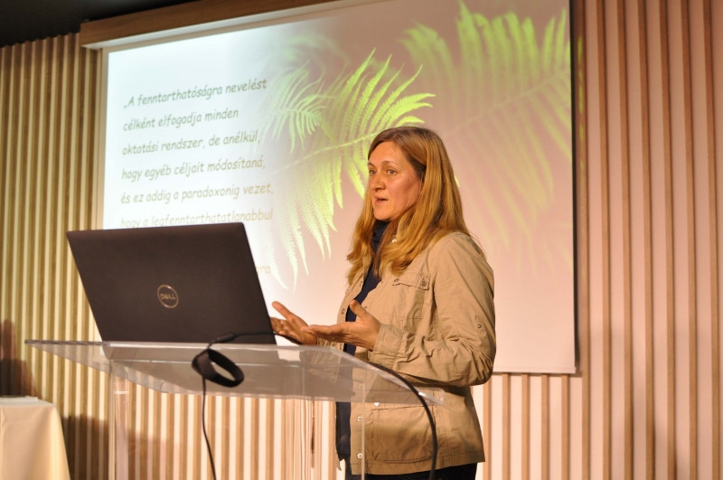 Jaczenkó Edit biológia-környezetvédelem szakos tanár a teremtésvédelem és az oktatás kapcsolatáról szólt előadásában. „Az oktatás – ha teremtésvédelmi szempontból vizsgáljuk – veszélyezteti a jövőt, mert a jelenlegi fenntarthatatlan gazdasági folyamatokban való részvételre készít fel. Ezenfelül nem eleget, vagy nem jól foglalkozik az emberiség előtt álló globális kihívásokkal.” Bár üdvözölendőek az iskolákban megszervezett zöld hetek, a környezetvédelemre irányuló projektnapok, egy intézmény működtetési módja (például hogy hogyan szerveznek meg egy rendezvényt vagy osztálykirándulást) erősebben hat a diákokra, üzenetet közvetítve a fenntarthatóság fontosságáról vagy éppen jelentéktelenségéről.