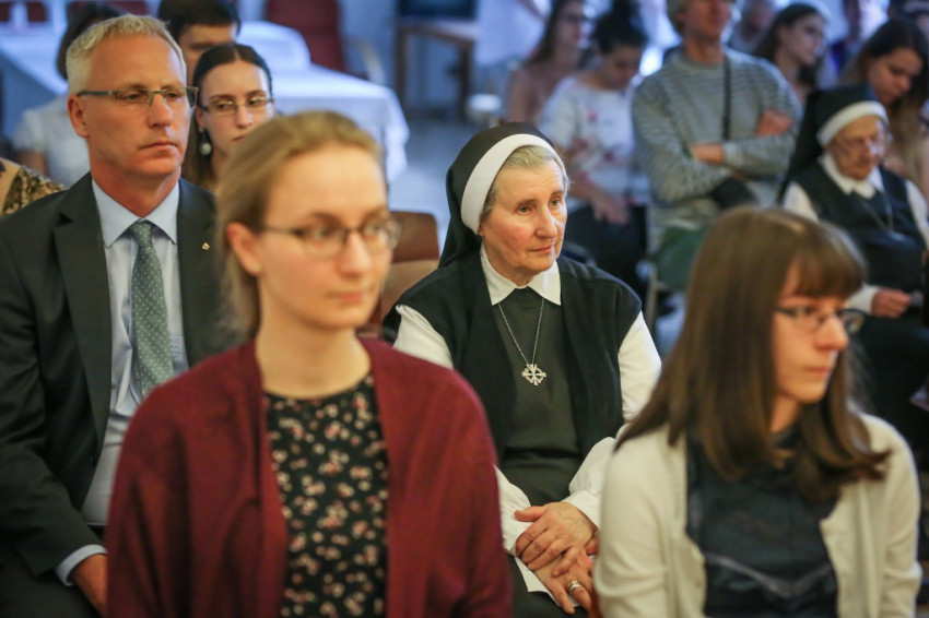 Ezért gyűltek hát össze a szerzetesnők, a diákotthon lakói és a munkatársak május másodikán, a Sasvár utcai házban, hálaadó szentmisére, melynek főcelebránsa Pákozdi István egyetemi lelkész volt. Vele együtt mutatta be a szentmiseáldozatot a ház közvetlen szomszédságában található Krisztus Király-plébánia plébánosa, Nagy Zoltán, valamint Tomka Ferenc atya. Az ünnepi szentmisén részt vett Soltész Miklós államtitkár is.