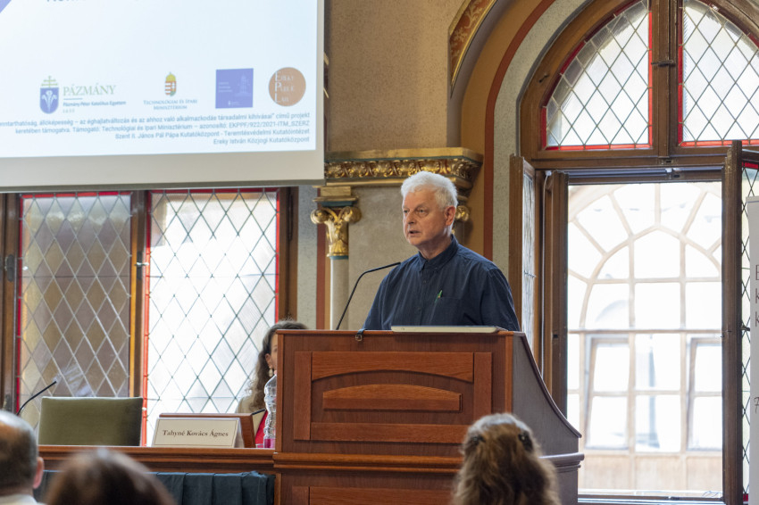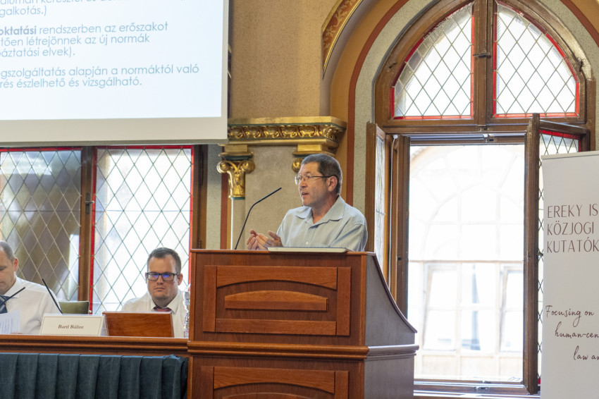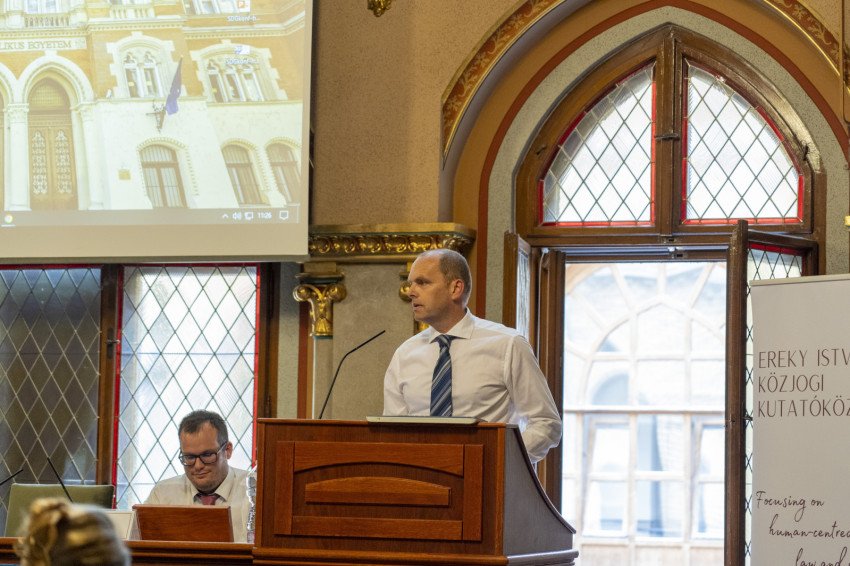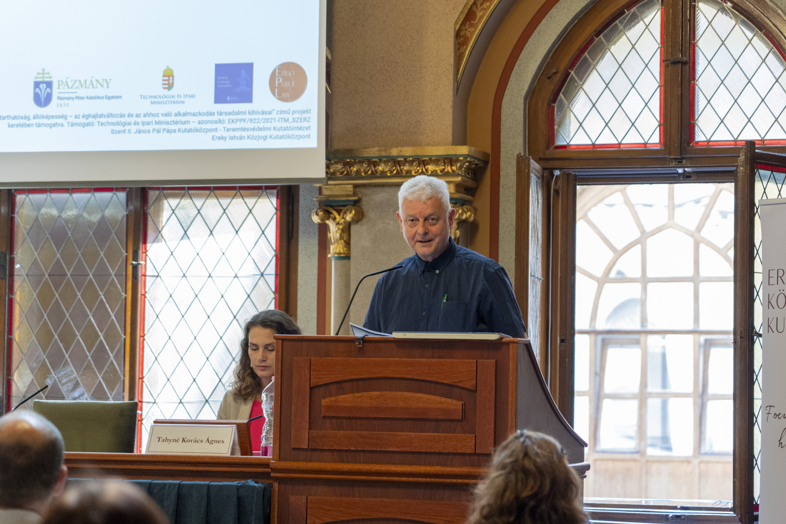 Gerencsér Balázs Szabolcs habilitált docens, az Ereky Kutatóközpont igazgatója előadásában a magyar oktatásigazgatás történelmi meghatározottsága után kitért a jelenkori, egyre központosító igazgatás organikus útjára és szabályozási rendszerére. Példákkal támasztotta alá, hogy a fenntarthatósági célok a magyar oktatási rendszerre is érvényesek, és a mi fejlődésünket is szolgálják.