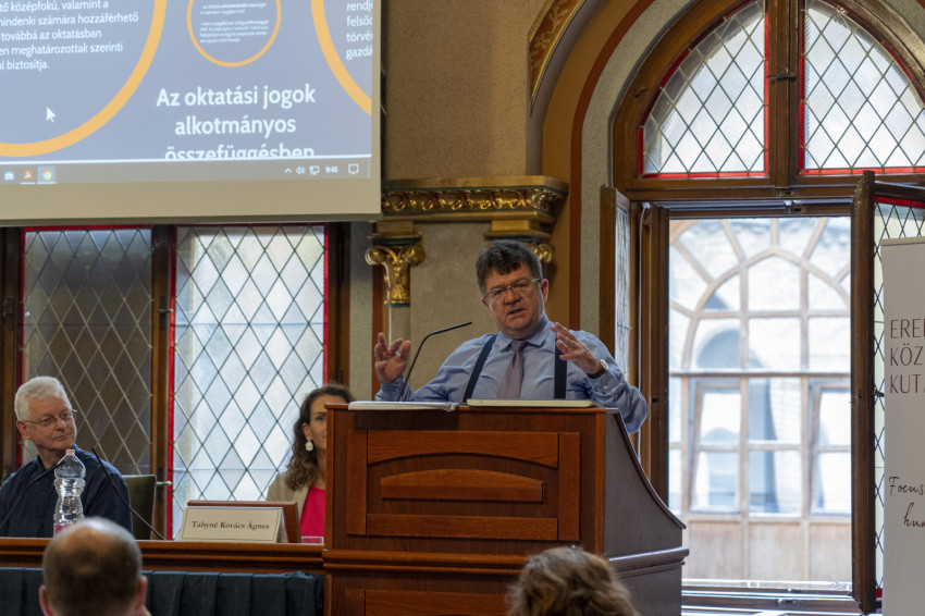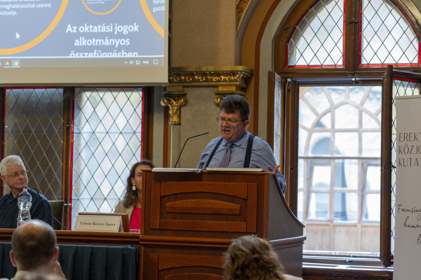 Aáry-Tamás Lajos, az oktatási jogok biztosa a jogok védelmének aktuális helyzetéről mondott előadásában kifejtette az alaptörvénybe foglaltak fontosságát. Az alaptörvény megfogalmazza a művelődéshez való jogot, amelynek pillérein a „lehető legmagasabb tudás” megszerzésének lehetősége áll, ami összetett, összességében művelődést, azaz az oktatáshoz és a kultúrához való hozzáférést jelent.