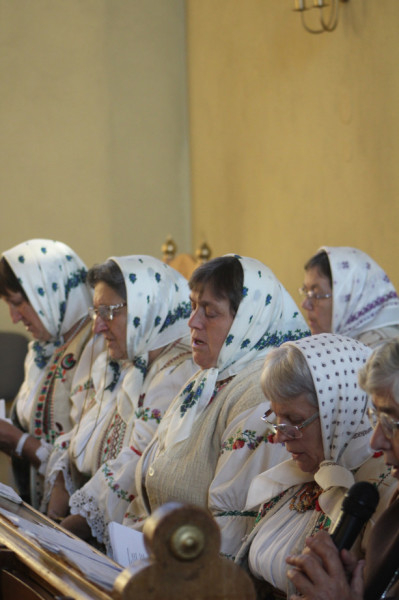 Az októberi Mária-áhítat kezdetén tartott szentségimádáson a Gyimesekből érkezett rózsafüzér-társulatok csoportja vezette az imádságot és az énekeket.