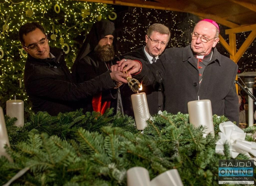 Ezt követően a történelmi egyházak püspökei és a város polgármestere együtt gyújtották meg az első gyertyát az adventi koszorún.