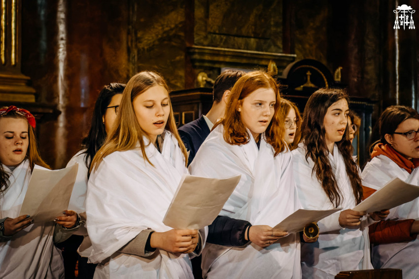 A két csoport később az Agnus zenekar dicsőítő koncertjén találkozott, amelynek szintén a palota pincéje adott helyet, és amelybe azok a hitoktatók is bekapcsolódtak, akik a lelkinappal párhuzamosan kétnapos szakmai továbbképzésen vettek részt a püspöki székvárosban.