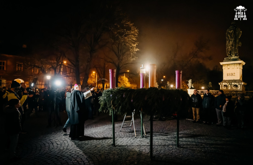 A rendezvényt a székesegyház előtt felállított adventi koszorúnál az első gyertya meggyújtása zárta: a fiatalság képviselői lobbantották fel a várakozás első lángját.