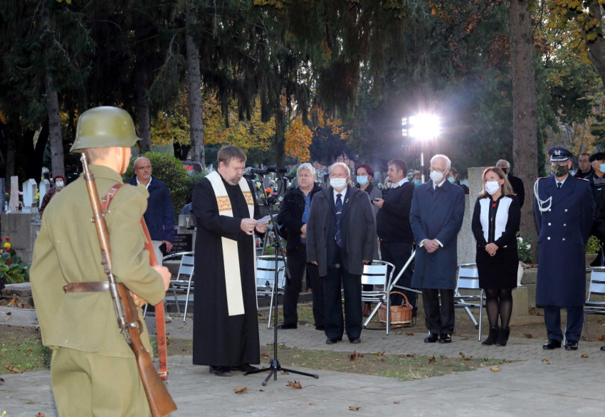 Wigand István bonyhádi plébános, német nemzetiségi referens a halottak napi ökumenikus imádság alkalmával német nyelven szólt az egybegyűltekhez. Sokszor és sokáig fegyverekkel próbáltuk megoldani a konfliktusainkat, ami csak sötét perceket, megannyi kiontott vért, megtört életet, eltemetett reményt eredményezett. Erőfeszítéseink hiábavalók voltak – fogalmazott, és kérte az Urat, vezessen mindenkit a béke útján, nyissa fel a szemünket és tárja ki szívünket, és adjon bátorságot, hogy ezt mondjuk: „Soha többé ne háborúzzunk!” Őrizze bennünk a remény lángját, hogy türelmes kitartással dolgozzunk a párbeszéd és a megbékélés érdekében, hogy végre megvalósulhasson a béke.