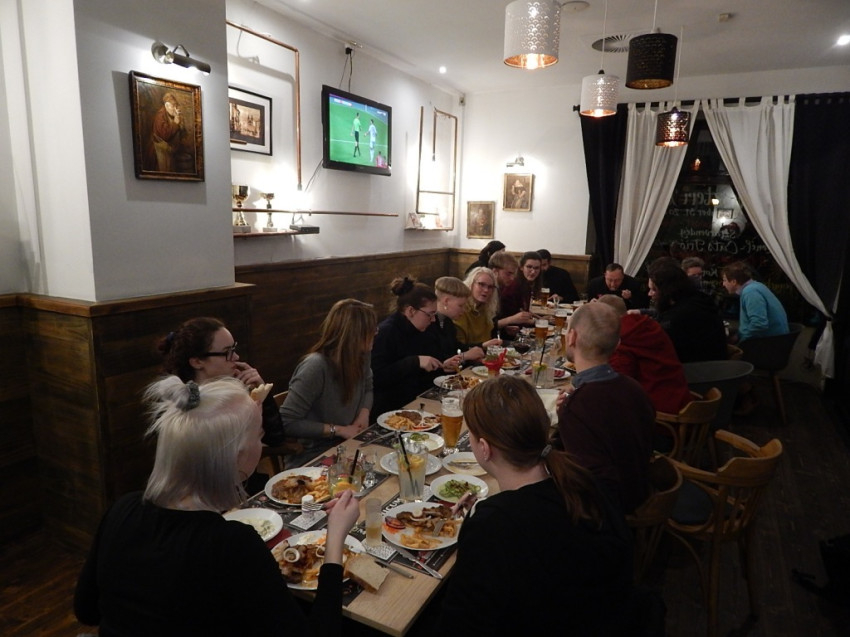 A fiatalok a Budapesti Római Katolikus Egyetemi Lelkészség vendégeiként – egy jókedvű vacsora keretében – megízlelhették a magyaros ételeket.