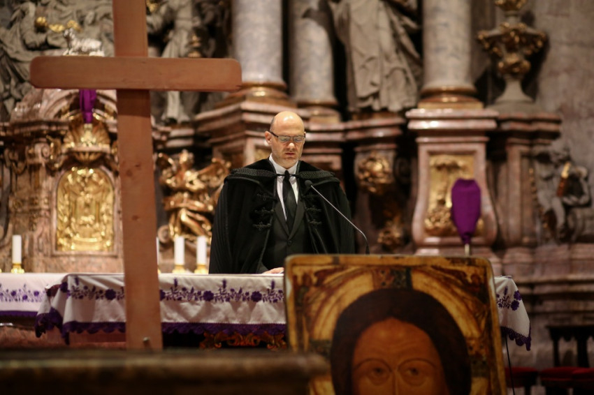 „Testvéreim! Úton vagyunk az Úr húsvétja felé. Most emeljük tekintetünket a keresztre, miközben korunk vértanúi kísérnek minket, akik az evangélium jegyében éltek és haltak meg” – ezekkel a szavakkal nyitotta meg az imaórát Bíró László püspök.
