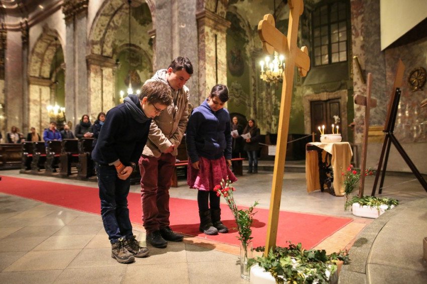 A résztvevők gyertyát gyújtottak az áldozatokért, és minden kontinens szenvedéseinek felsorolása után állva fogadták a földrész keresztjét, amelyet egy-egy közösségi tag az oltárhoz helyezett, miközben fohászkodtak, hogy a feltámadás fénye ragyogja be az imába foglalt világrészeket.