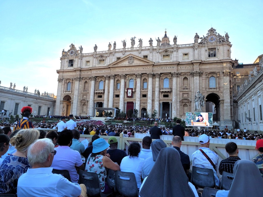 A forró napsütés ellenére hatalmas tömeg gyűlt össze, hogy közösen imádkozzon a szinódus eredményességéért.